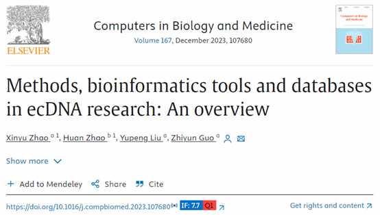 近日,郭志云课题组在国际权威生物信息学领域期刊Computers in Biology and Medicine在线发表了题为“Methods, bioinformatics tools and databases in ecDNA research: An overview”的文章(JCR一区,影响因子7.7分)。我院郭志云老师为独立通讯作者,研究生赵欣宇为第一作者,西南交通大学为通讯作者单位。