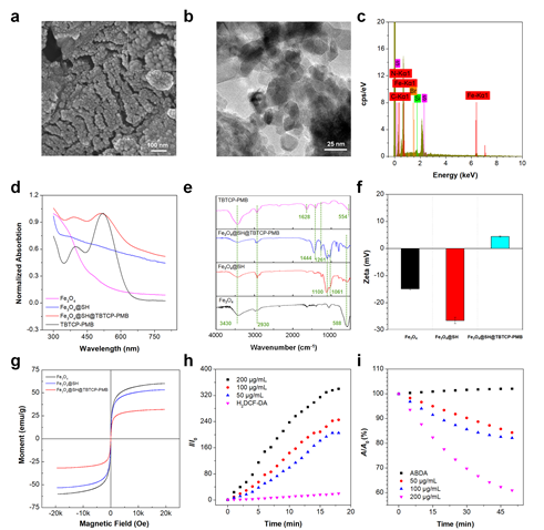图2 Fe3O4@SH@TBTCP-PMB的表征和光物理性质