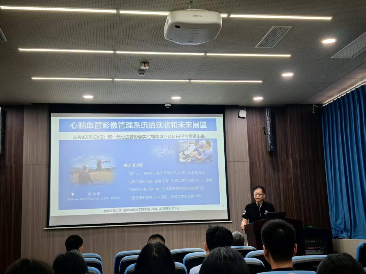 2025年9月15日上午,开云kaiyun网页版官网创源大讲堂研究生学术讲座在工业中心C103会议室举行。本次讲座主题为“心脑血管影像管理系统的现状和未来展望”,特邀心血管影像信息系统资深专家、Hawkie MediTech, Inc.创始人兼CEO、我校1985届校友吴小朋先生担任主讲。基于其25年的行业经验,他为师生带来了一场深度与前瞻性并存的学术分享。