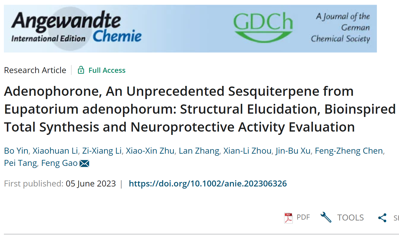 我院高峰课题组近日在化学类顶级期刊Angewandte Chemie International Edition上在线发表研究论文,报道了一个全新骨架倍半萜的分离鉴定、仿生全合成及神经保护活性。