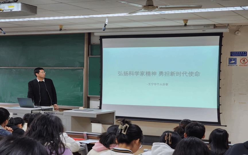首先,药学系教工党支部书记王宁宇老师以“弘扬科学家精神,勇担新时代使命”为主题分享了自己的科研经历及对科学家精神的理解,用“科学性”、“严谨性”、“专注性”和“耐性”四个关键词概括了科研人员应具备的基本素质。随后王老师结合自身求学和教学经历,分享了关于科学研究的几点感悟和建议,并对我院研究生提出希望,希望同学们能够具备底线思维,保持足够的专注度和耐性,重视合作和交流,培养科学素养与科学精神。