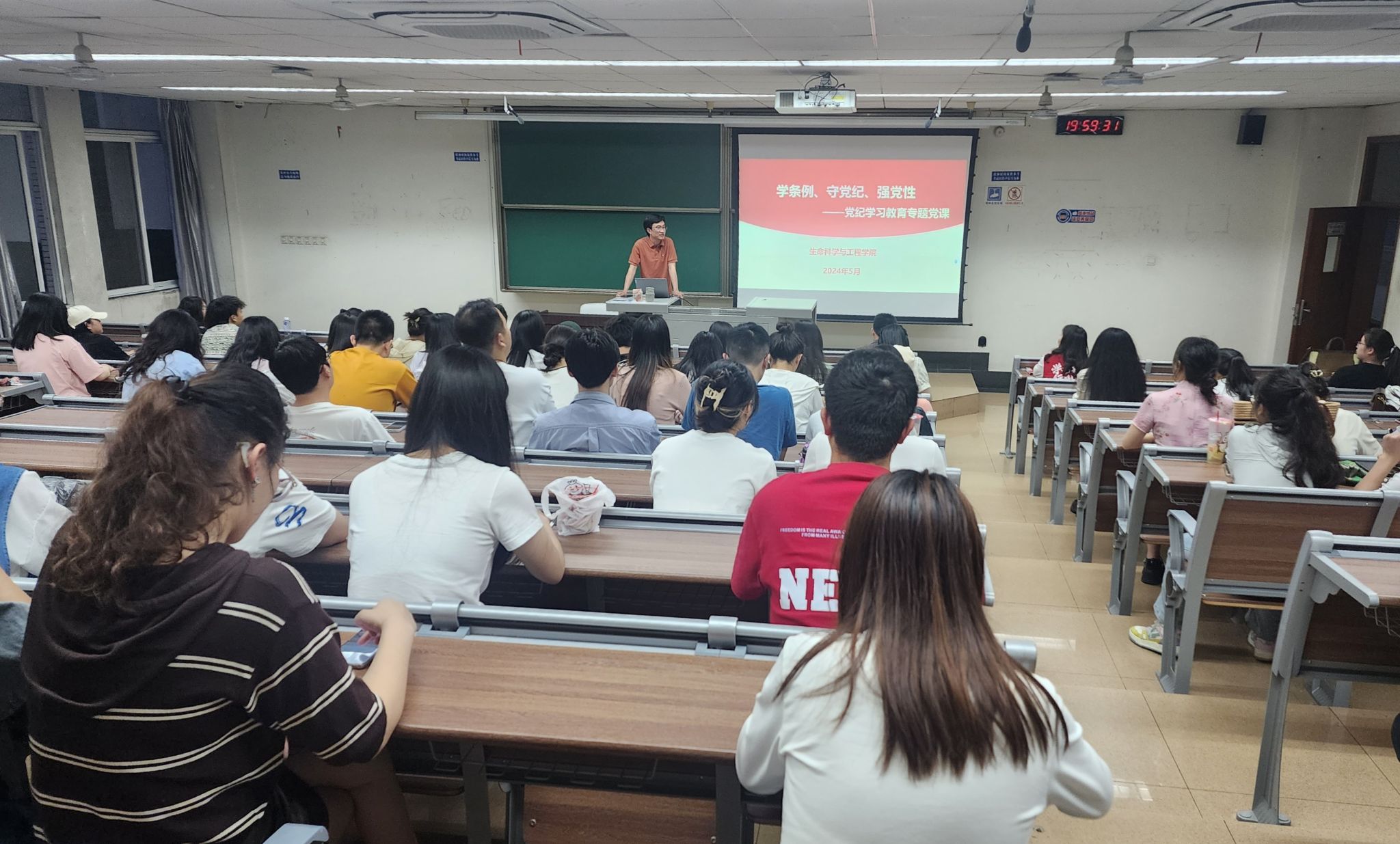 2024年5月12日晚19:30,生命学院研究生党支部于九里校区逸夫馆4323开展“学条例、守党纪、强党性”主题党日活动暨“崇德向善扬正气,严守纪律树新风”校级示范性学生党支部特色活动启动仪式。学院党委副书记、纪委书记朱炜,西南交通大学研究生“红路”理论学讲团、人文学院2023级新闻与传播专业硕士研究生钟蔓君,研究生第二党支部、第三党支部、第四党支部研究生党员及入党积极分子参加活动。本次党日活动由研究生第四党支部书记黄斌翰主持。