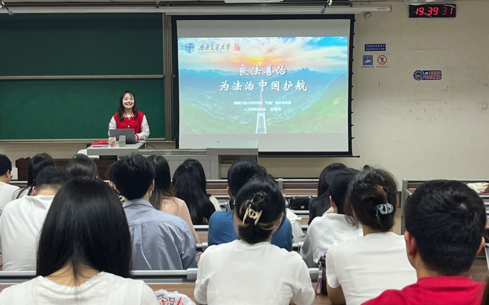 活动开始,黄斌翰宣布生命科学与工程学院研究生党支部党纪学习教育主题党日活动暨 “崇德向善扬正气,严守纪律树新风”校级示范性学生党支部特色活动正式开始,并邀请研究生“红路”理论学讲团讲师钟蔓君同学作《良法善治,为法治中国护航》主题宣讲。法律是治国之重器,良法是善治之前提。钟蔓君用严肃又不失活泼的语言为大家详细描述了法治中国的基本内涵,同时又结合实际案例深入浅出地讲解了“良法”与“善治”的辩证关系。同学们也对自己理解中的“法制”与“法治”展开了热烈讨论。