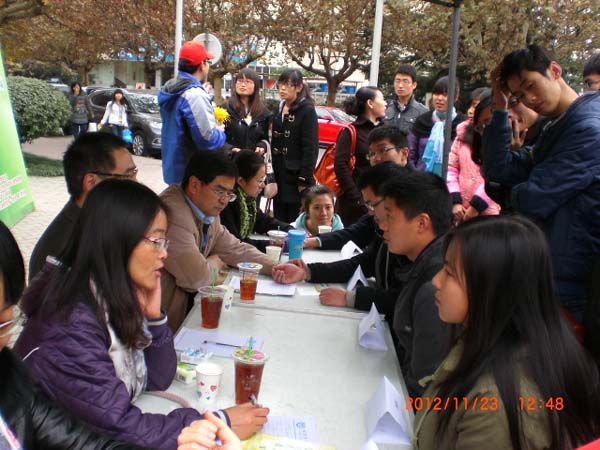 寒冬来临,疾病高发,健康自然成为了人们在此时关注度相当高的一个问题。为了解除我校广大师生在饮食健康、生病用药以及养生保健等方面的疑问和困惑,112311:0017:00,由生命学院2012级研究生1班党支部、2班党支部负责承办的“健康咨询,关爱人生”社会服务志愿活动在九里校区求实路口如期开展。本次活动由校学生处、生命科学与工程学院党委主办,是研究生校级示范党支部特色活动。本次活动邀请到了生命学院从事医疗保健研究的五位专家学者:中医学专家马超英教授、医学博士喻凯教授、高级营养工程师李遂焰教授、中医韩楠博士与西医唐静老师等亲临现场为师生们提供咨询。