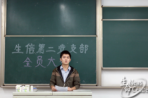 随后,支部书记曹楠普作为入党介绍人介绍发展对象情况,并对八名发展对象在校表现作出高度评价。在之后就周昆等八位发展对象能否被接受为预备党员的举手表决中,八人均全票通过。最后,曹楠普宣读大会决议,表示大会已通过接收周昆等八名同志入党的决议。