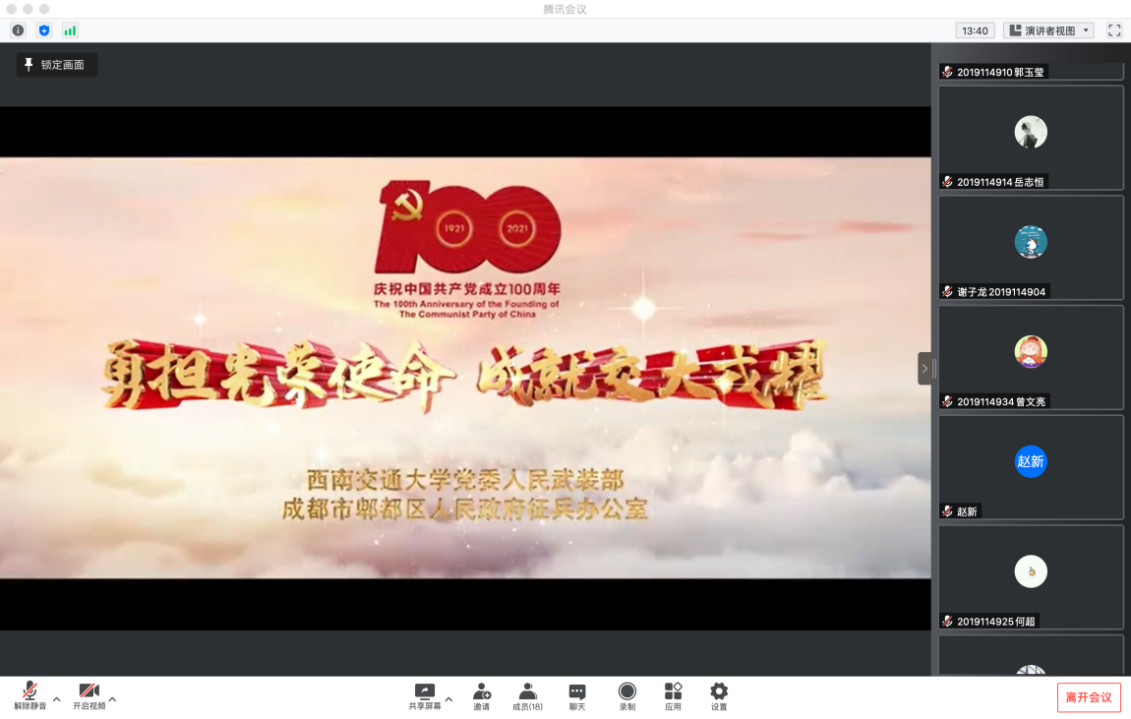 会议伊始,全体同学线上观看了《2022年春季学期开学第一堂团课》视频,重温了百年来中国共青团在中国共产党的领导下走过的光辉历程。通过学习团史,同学们更深入地了解到,中国共青团是中国共产党领导的先进青年的群团组织、是广大青年在实践中学习中国特色社会主义和共产主义的学校、是中国共产党的助手和后备军,同时也更深刻地感受到自己作为一名共青团员所应肩负的使命与责任。