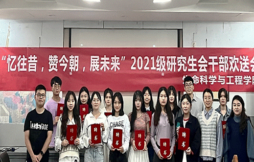 生命科学与工程学院第八届研究生会骨干欢送会于924日在九里校区3609顺利举行。学院学生工作组副组长、团委书记高鹏老师,辅导员杨颖增、兰卓和饶欢以及第八届研究生会全体成员出席本次欢送会。