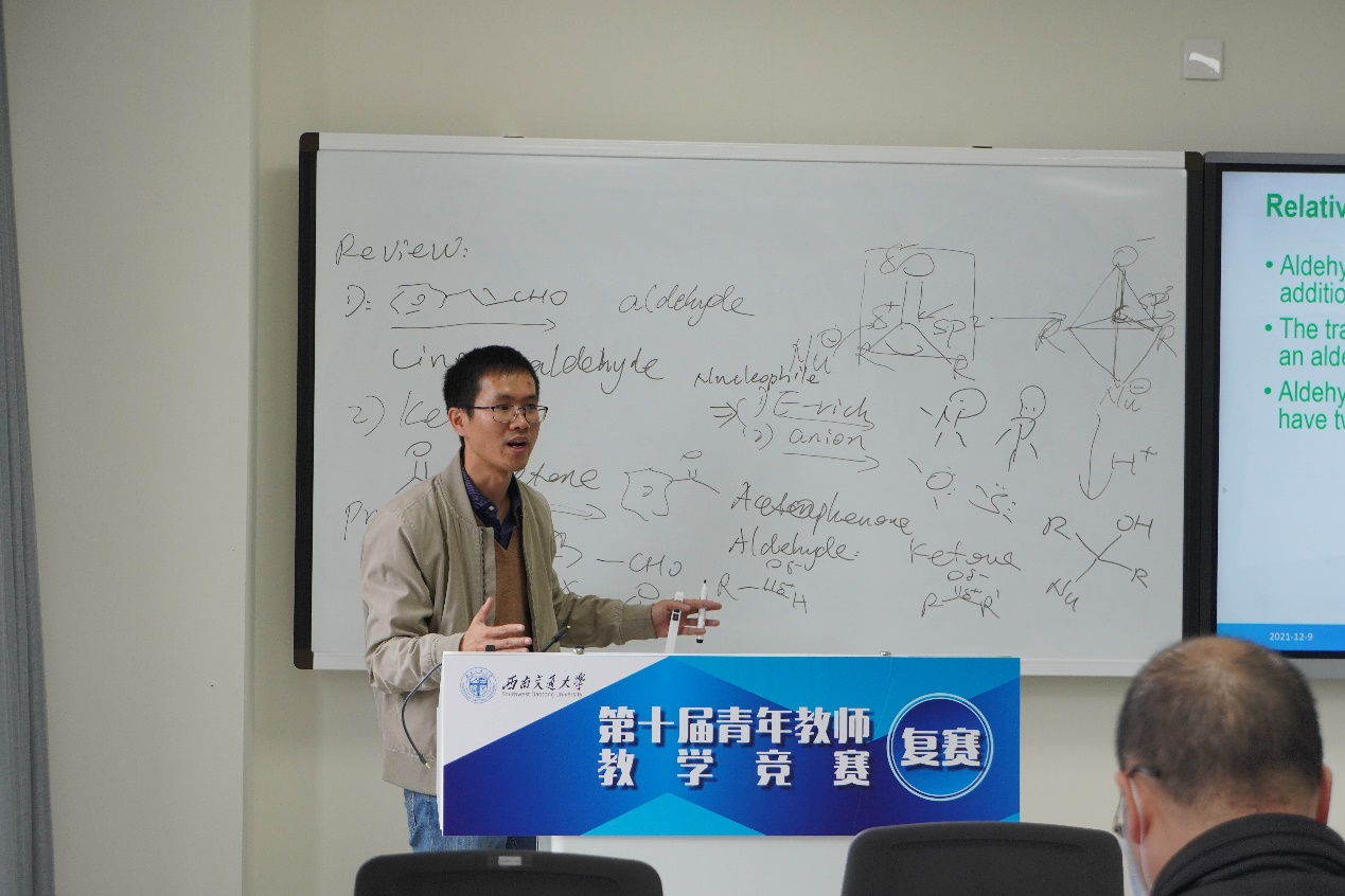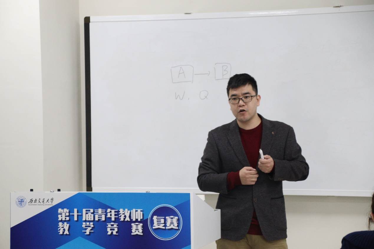 为大力弘扬“工匠精神”,引导青年教师进一步强化立德树人理念、锤炼教学基本功,促进教师参与课程教学改革,聚焦课堂,积极探索有效教学的途径和方法,提高教学业务能力与水平,12月9日,西南交通大学在犀浦校区开展第十届青年教师竞赛复赛。我院刘祥伟、苑昊、李加洪、符雷蕾、江育虹、林旭辉、王垚磊7位老师参加学校复赛。
