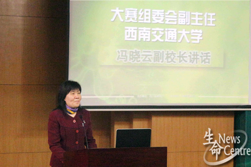 赛会组委会副主任、西南交通大学冯晓云副校长首先致辞,她向全体工作人员及参赛人员表示由衷感谢和热烈欢迎,接着强调了生物科学在21世纪的重要性,希望参赛人员利用此次比赛互相交流学习经验,提升能力,努力将高效创新能力对接市场需求,为国家经济发展和社会进步作出更大、更新的贡献,最后她预祝比赛圆满成功。