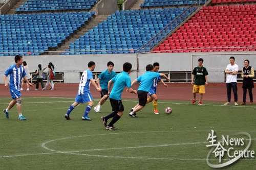 4月9日17:00,第二届西南交大教职工五人制足球赛于北区足球场拉开帷幕。生命学院代表队被分到了D组,小组其他成员分别为体育部、教务处、建筑、外语、电气五支队。在历时9天的五场小组赛中,生命代表队的队员都拼尽全力,赛出风格赛出水平,且每场比赛都收获了进球。生命学院工会主席胡久梅全程到现场为我院球队加油鼓劲,学生会、新闻中心的全程组织了啦啦队和新闻报道工作人员。因实力上的差距,本次比赛我院代表队遗憾未能晋级淘汰赛阶段。友谊第一,比赛第二,本次比赛以球会友,加强了学院间的交流与互动,期待明年我院会有更好地成绩。