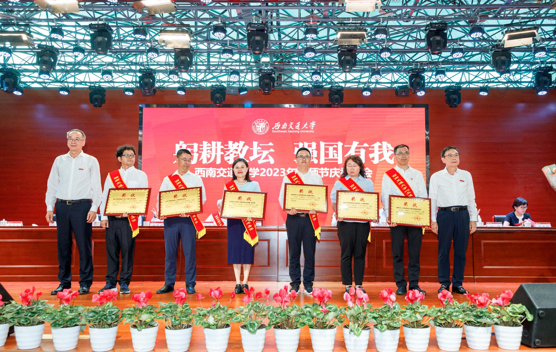 9月8日下午,西南交通大学隆重举行2023年教师节庆祝大会,学校研究生院常务副院长、生命科学与工程学院院长周先礼教授领衔的“生命之星”教学团队荣获学校第三届“立德树人”先进集体荣誉称号。校党委书记余敏明、校长杨丹出席大会并为“立德树人”先进集体颁奖。