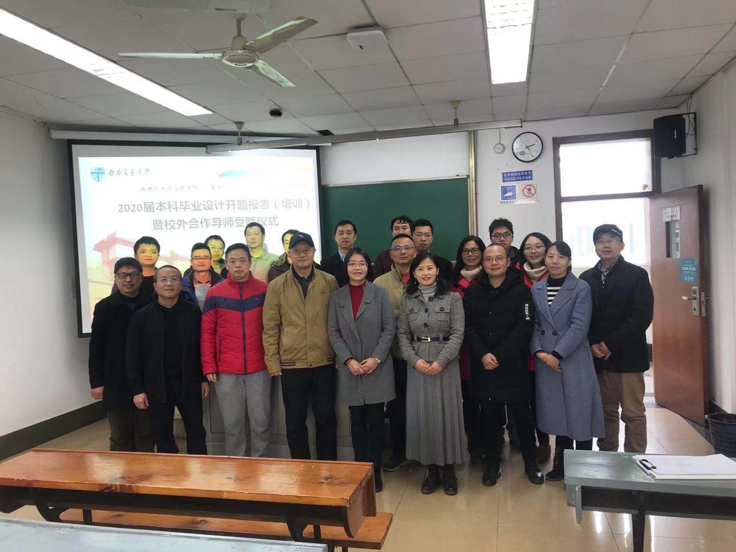 2019年12月5日,生命学院2020届本科毕业设计开题报告培训暨校外合作导师受聘仪式在九里校区4504A顺利举行。本次培训邀请了来自四川大学化学工程学院的宋航教授、兰先秋副教授、何泽超副教授、李子成副教授等专家,为2020届本科毕业设计的指导教师开展培训活动。学院副院长李遂焰、生物系主任王枢、化学化工系主任陆群等17位导师参加本次工作坊。