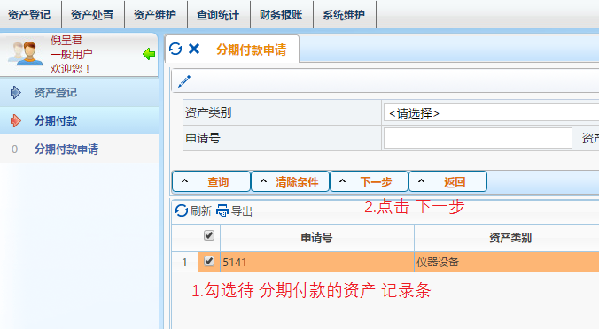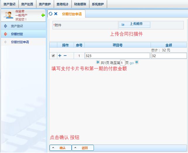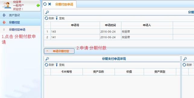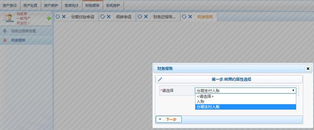 4、待资实处管理员审核后,就可以进行财务报账操作,选择“分期支付入账”
