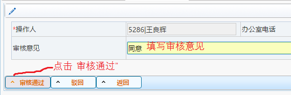 在“审核意见”中填写“同意”或者“不同意”等审核意见,如同意,则点击审核通过,如不同意,则点击“驳回”。