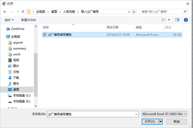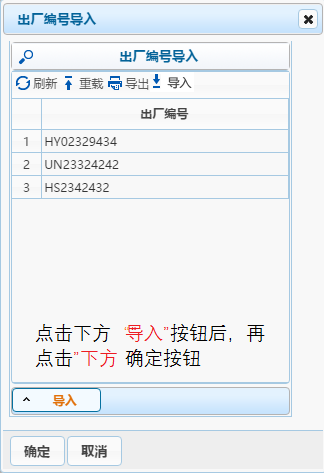 导入输入了出厂编号的“出厂编号填写模板”文件
