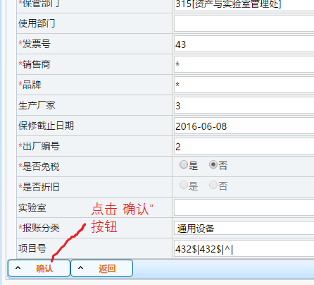 3.选择入账类别:家具用具装具、仪器设备、低值品