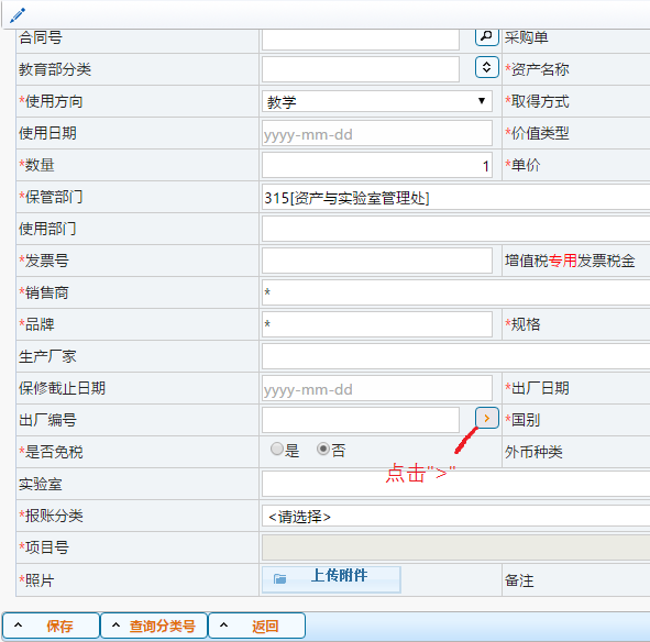 (2)填写“价值”字段,在“价值”栏输入发票总金额,“数量”栏输入资产数量, “单价”自动计算出来。注:“价值”字段,增值税专用发票填写不含税总价,其他发票填写含税总价。