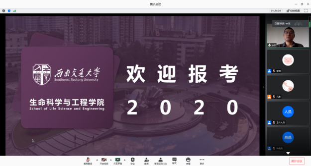 To promote the construction of life sciences in Southwest Jiaotong University , promote exchanges of outstanding college students across the country , and optimize the source structure of graduate students in our school , the 2020 Summer Academic Summer Camp for Outstanding College Students in the School of Life Science and Engineering of Southwest Jiaotong University will be held from July 14 to 7 . It was held smoothly on the 16th. Due to the epidemic, this summer camp was all conducted in the " cloud network " , with introductions to the hospital , introduction to degree programs , academic lectures , personal demonstrations by campers , and teacher-student exchanges .