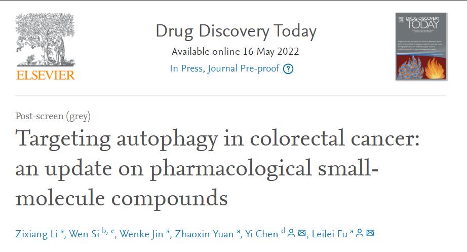 我院“小分子天然药物”团队在药学权威期刊Drug Discovery Today上发表综述