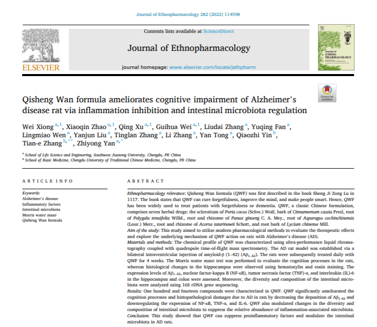我院闫智勇教授课题组在中药药理学权威期刊《JOURNAL OF ETHNOPHARMACOLOGY》上发表高水平论文