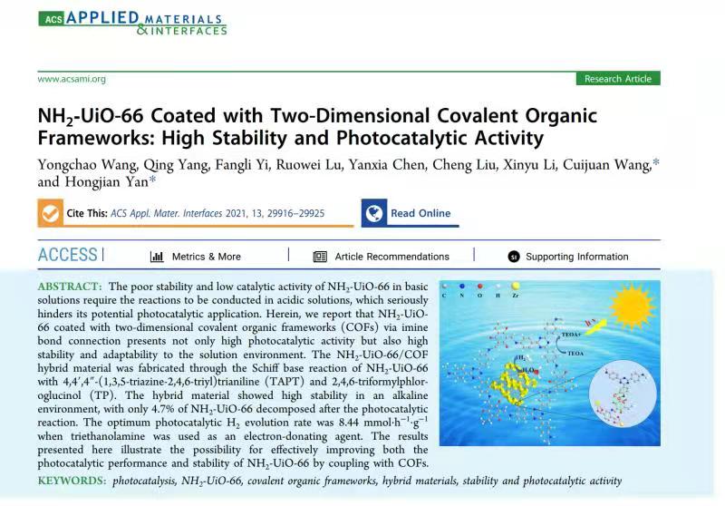 我院王萃娟老师课题组在材料领域TOP期刊《ACS Applied Materials & Interfaces》上发表最新成果