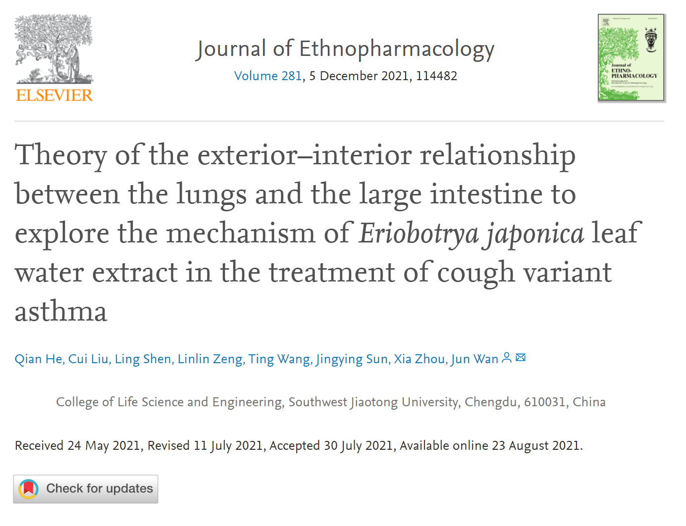 我院万军课题组在中药药理学权威期刊《JOURNAL OF ETHNOPHARMACOLOGY》上发表高水平论文