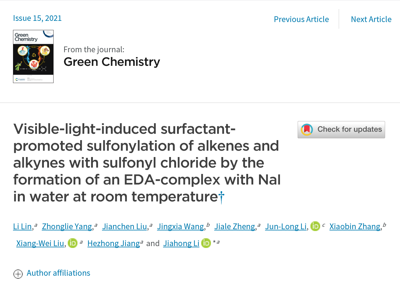 化学顶级期刊Green Chemistry发表我院李加洪博士团队最新研究成果