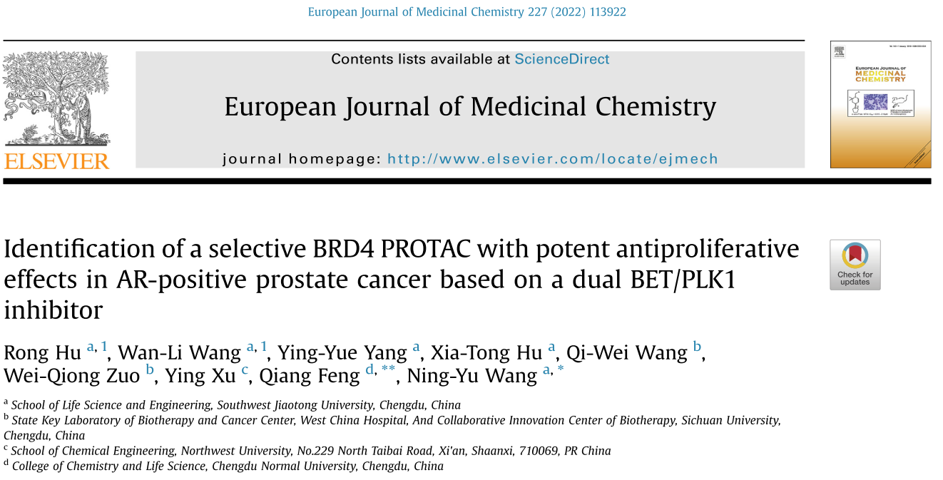 我院王宁宇课题组在《European Journal of Medicinal Chemistry》上发表高水平论文