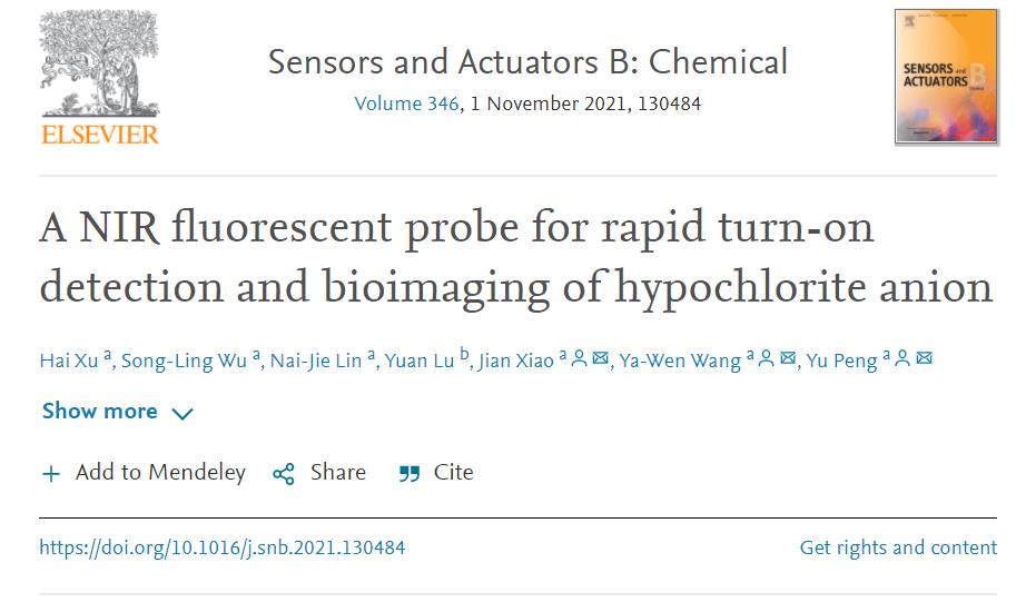 我院王雅雯教授课题组在《Sensors and Actuators: B. Chemical》和《Organic & Biomolecular Chemistry...