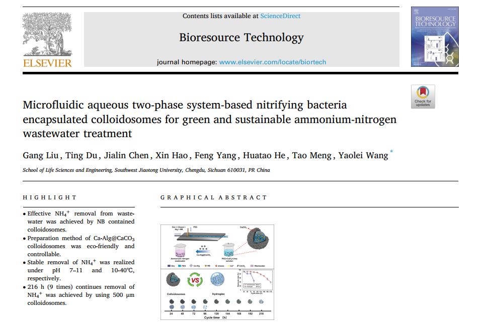 我院“微纳米生物技术”创新团队王垚磊老师在国际生物工程与环境领域顶级期刊Bioresource Technology发...