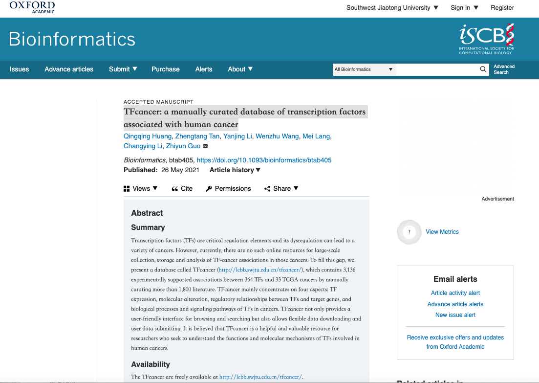 我校生命科学与工程学院郭志云课题组在生物信息学顶级期刊《Bioinformatics》上发表高水平论文