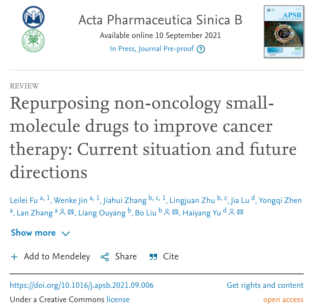 我院符雷蕾副教授和张岚副教授在药学Top期刊APSB发表综述