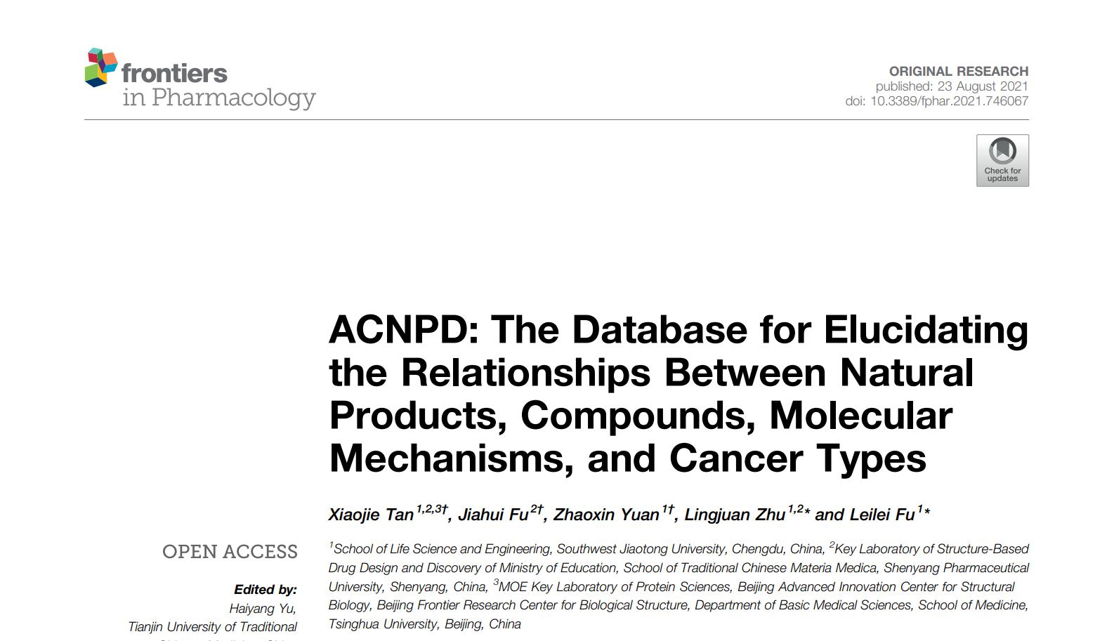 我院符雷蕾团队构建抗肿瘤天然产物数据库ACNPD
