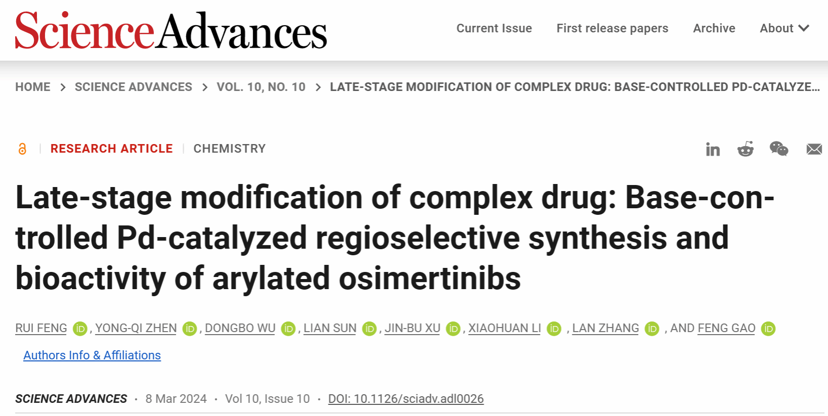 2024-03-18近日,我院高峰教授团队在复杂药物的结构优化新策略研究中取得新进展。相关研究成果以开云kaiyun网页版官网为第一单位,以“Lat...